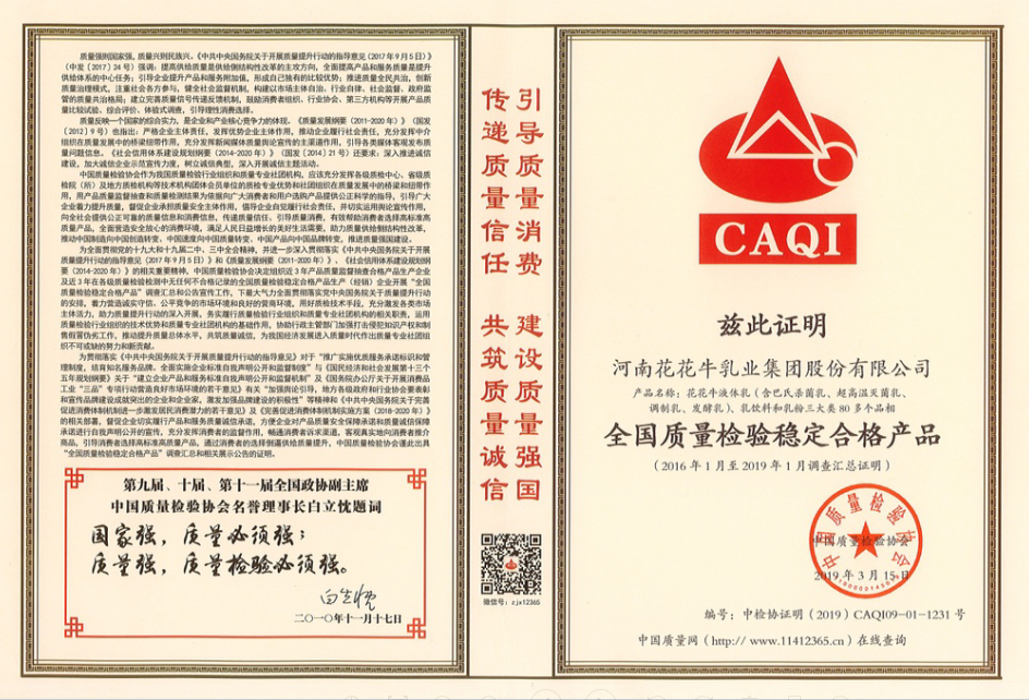 全國乳品行業(yè)質(zhì)量領(lǐng)先企業(yè)